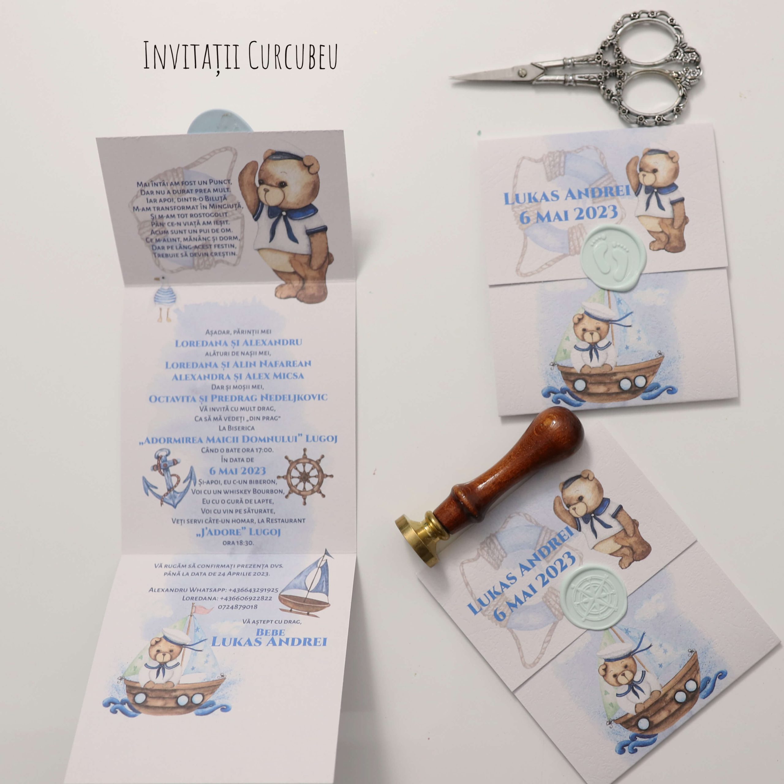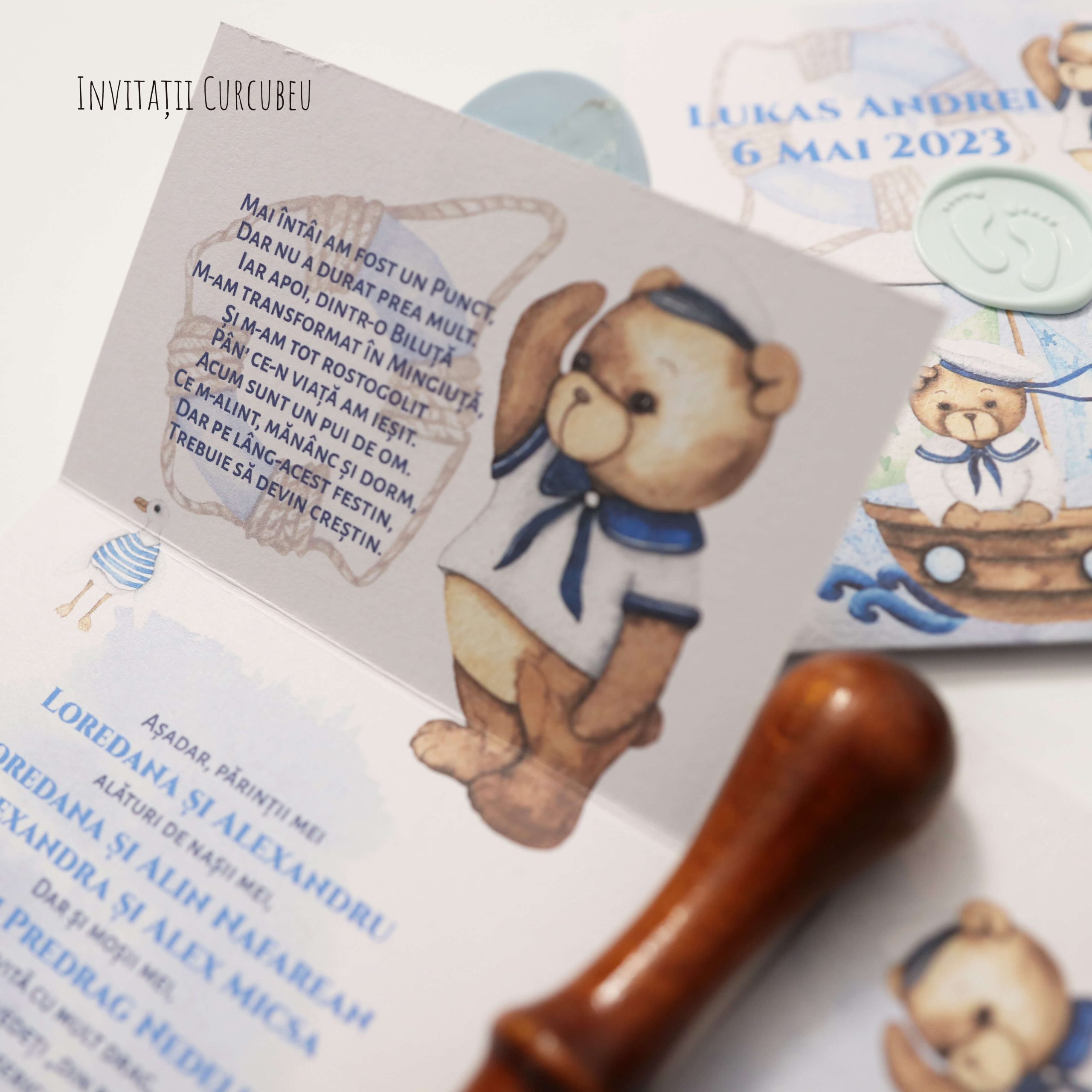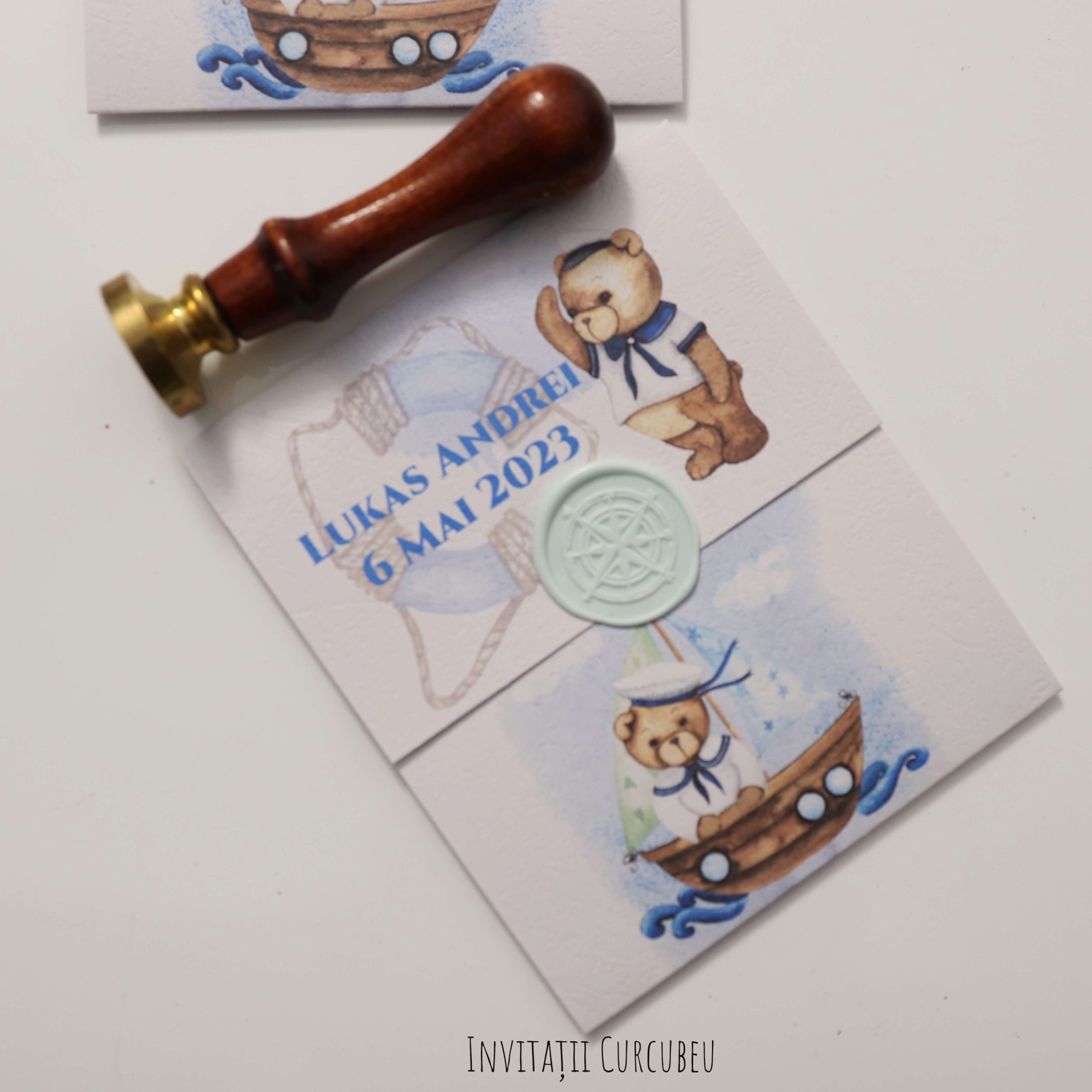 Invitații de botez- Ursuleț Marinar
