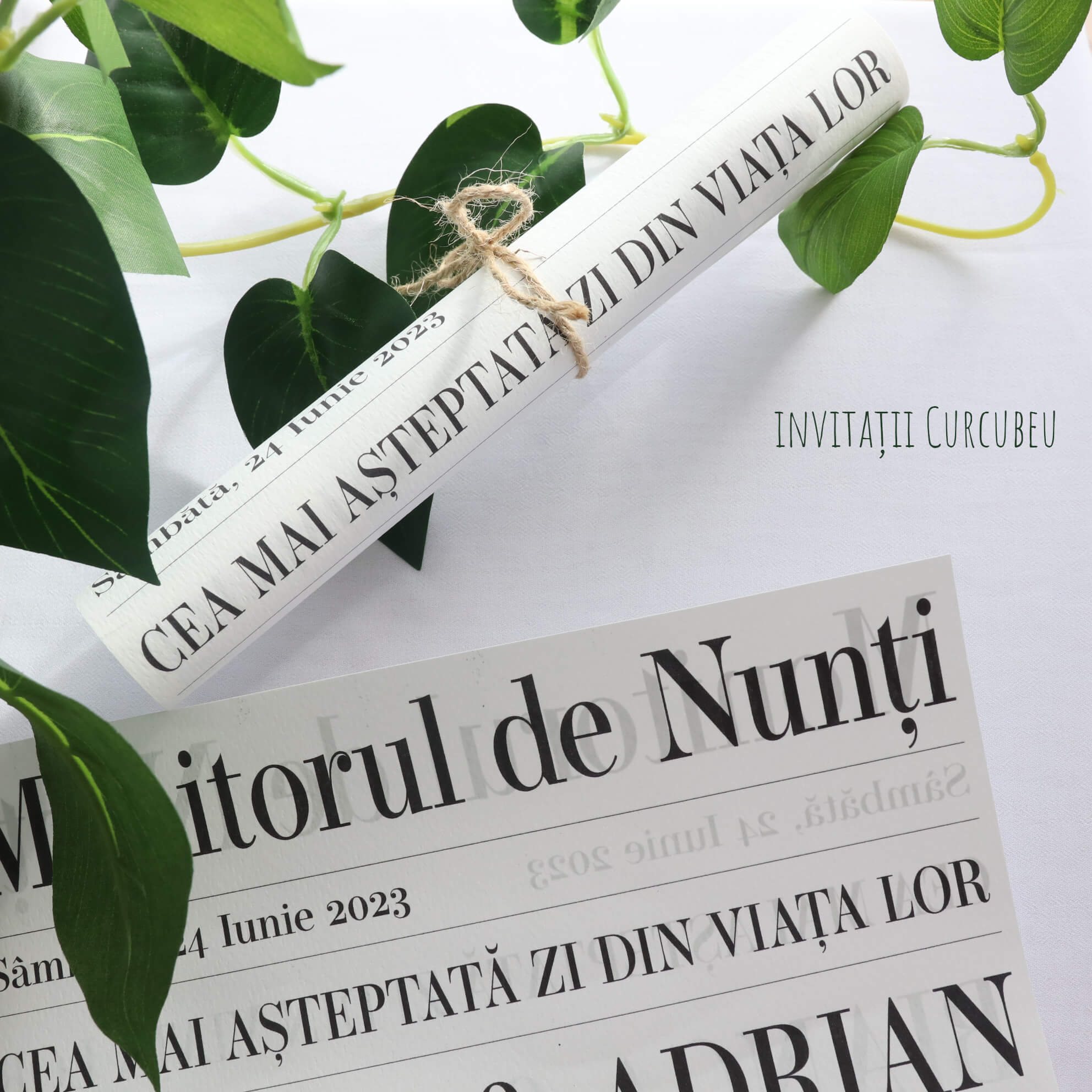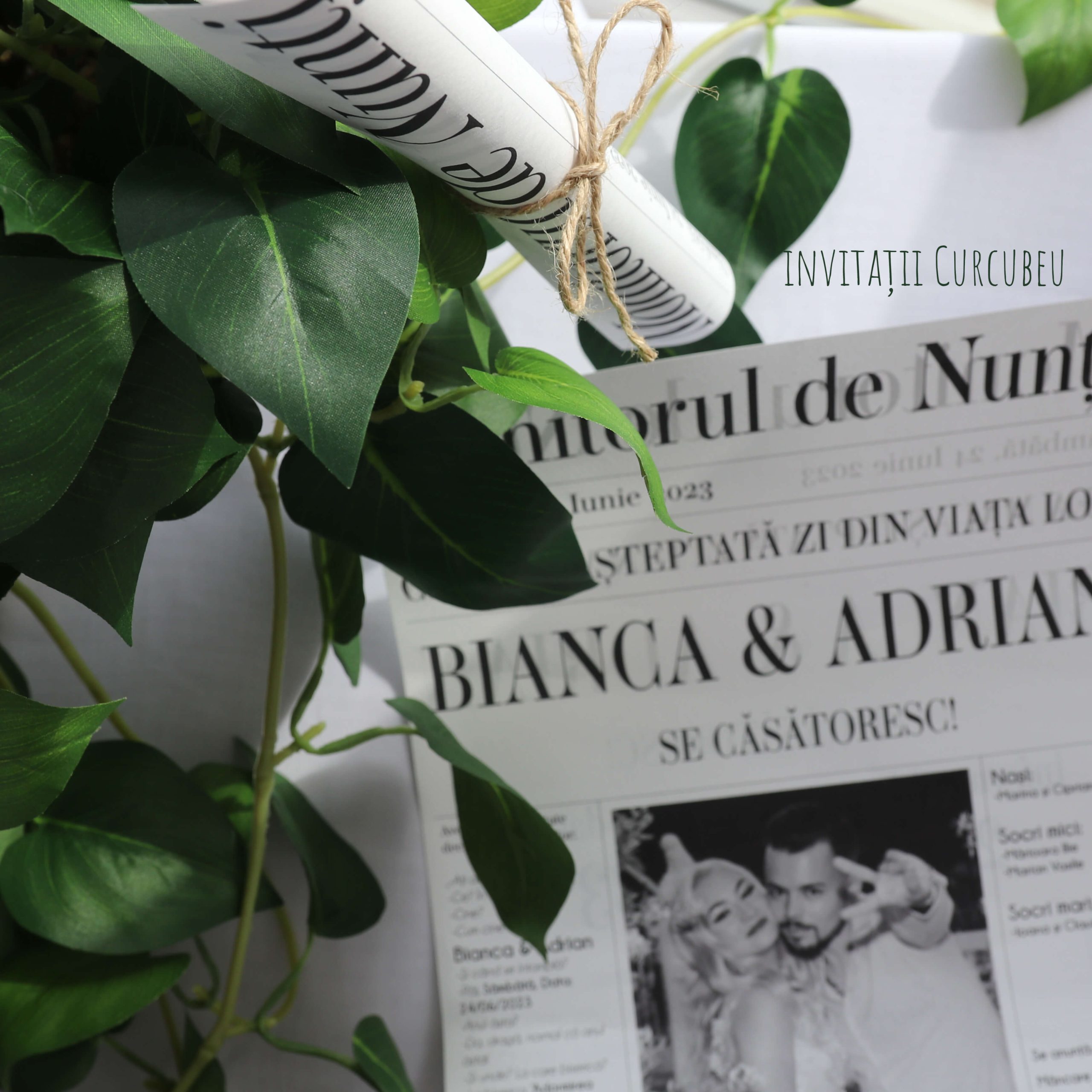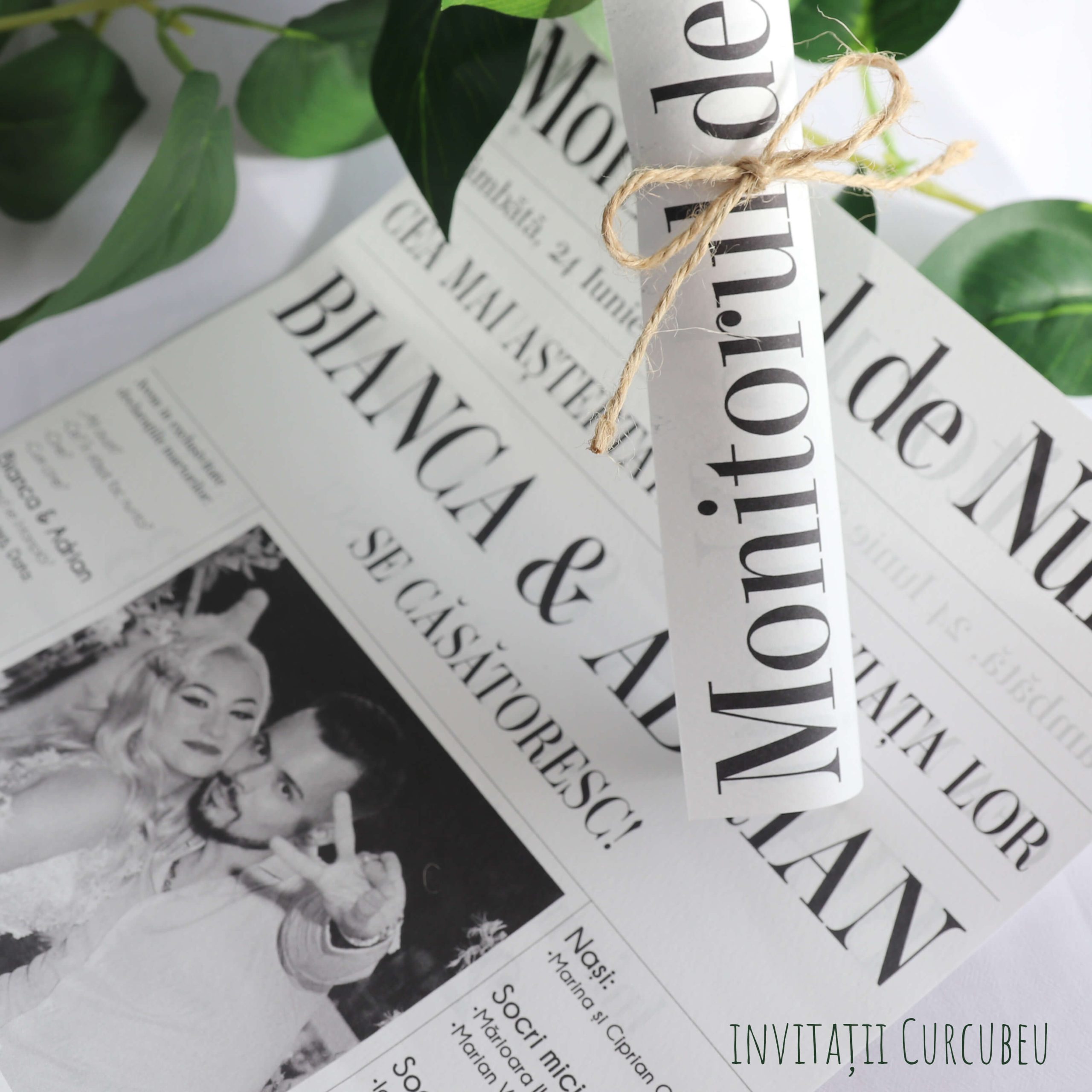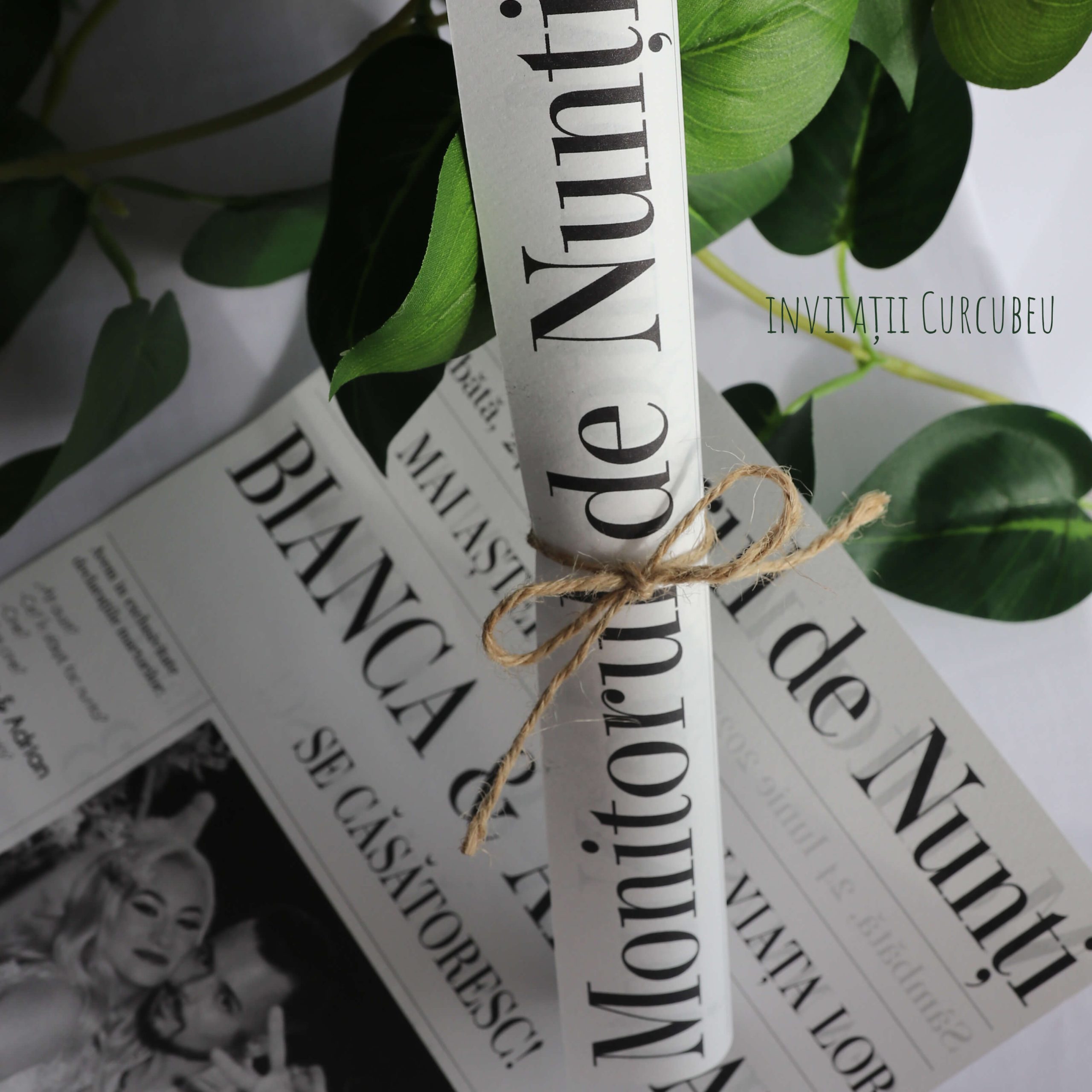 Dă de veste invitaților tăi că faci nuntă. Cum circulă veștile mai bine decât într-un ziar? Dimensiunea ne permite să punem vrute și nevrute în invitație, de la informații până la imagini, citate și alte elemente.