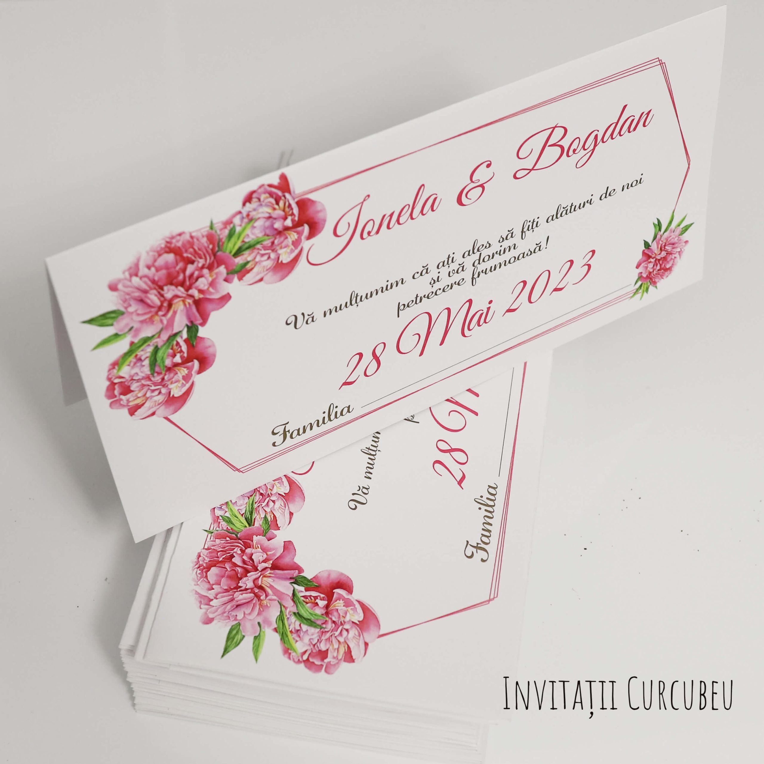 Plic de dar cu buzunar pentru bani și mesaj. Bujorii sunt o tematică în vogă în fiecare an.